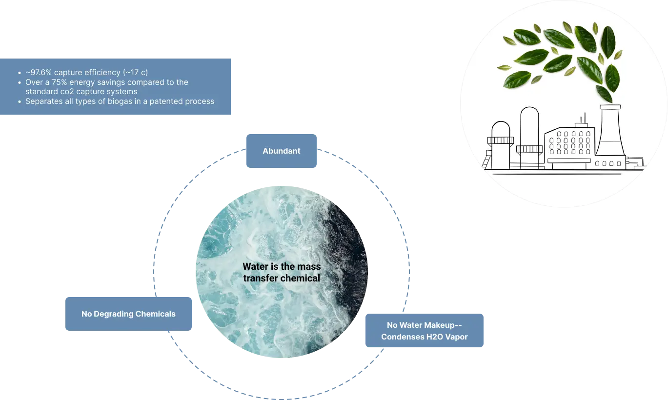 This is removing CO2 from industrial setting like cement, smelting, glass manufacture, steam plants for heating, etc. This process can operate well in this setting especially if there is excess waste heat or the potential for heat integration. The waste heat can be used for additional power recovery.